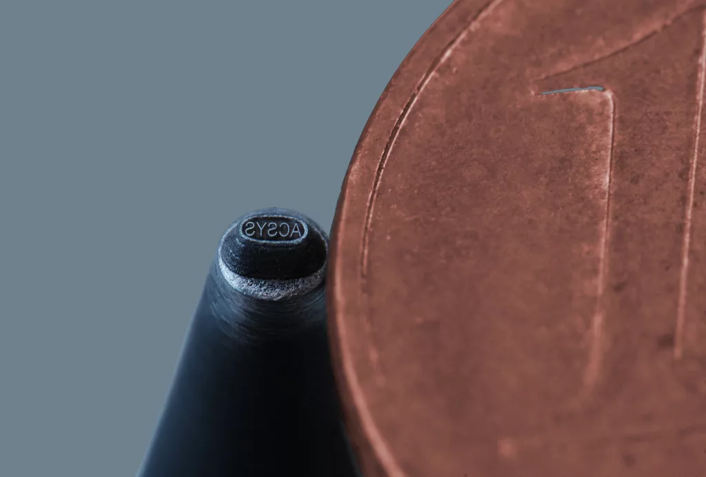 Kleiner, präziser und nahezu fälschungssicher: Per Mikrogravur lassen sich filigrane Strukturen und dreidimensionale Geometrien im µ-Format herstellen. Dafür setzt ACSYS modernste Ultrakurzpulslaser ein. Diese tragen pro Laserpuls weniger als 1 µm Material ab. Dies erlaubt Gravuren mit entsprechend feiner Tiefenauflösung. Zum Einsatz kommt das Verfahren der Mikrogravur beispielsweise in der Herstellung von Prägestempeln oder Gütesiegeln für den Echtheitsnachweis sowie in der Schmuckindustrie.